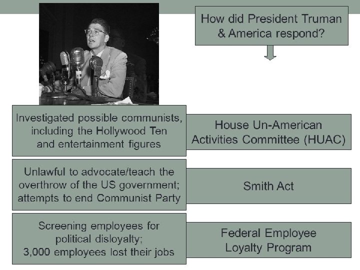 At home… • Remember: Many Americans had joined communist or socialist organizations during the Depression. • Loyalty Programs: all federal employees were subject to investigations