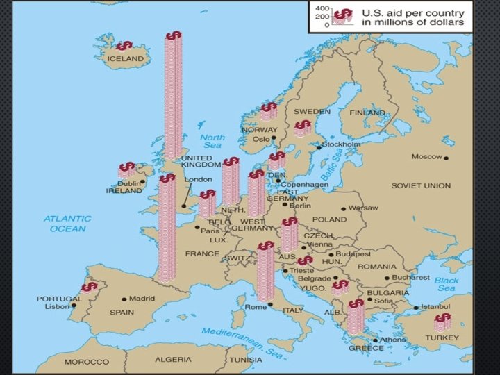 TRUMAN DOCTRINE • PROPOSED BY PRESIDENT HARRY TRUMAN IN 1947, THE TRUMAN DOCTRINE PROVIDED AID TO ANY COUNTRY BATTLING COMMUNIST AGGRESSION • IT WAS IMMEDIATELY USED TO SUPPORT THE FREE GOVERNMENTS IN TURKEY AND GREECE AGAINST COMMUNIST THREATS