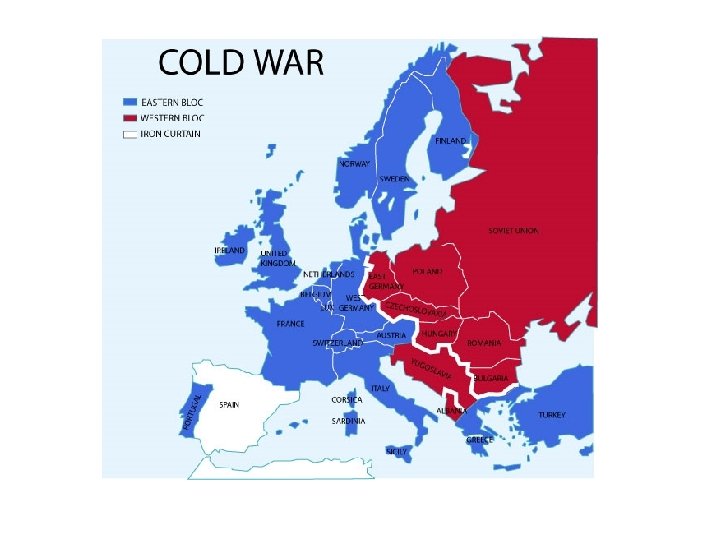 2. Soviet Union Presence in Eastern Europe • After WWII, The S. U. ’s army occuppied eastern Europe and parts of Germany. • Fear of Communism and Soviet influence spreading