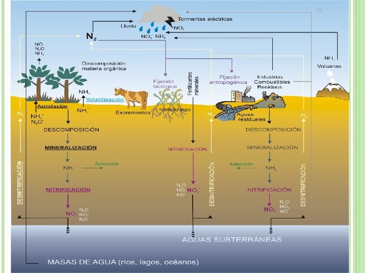 PROCESO Los organismos vivos no pueden utilizar directamente el nitrógeno que se encuentra en la atmósfera en forma gaseosa, y que supone el 71% del total; para ello, debe ser transformado previamente en nitrógeno orgánico (nitratos o amoniaco).