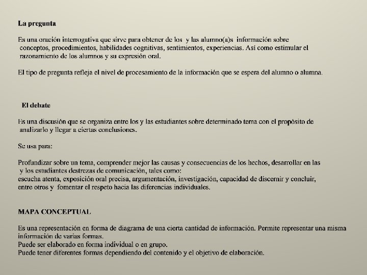 Evaluación Formativa Preguntas sobre el texto ¿Qué es? La evaluación formativa es la valoración del desempeño del alumno durante todo el ciclo escolar. Es una valoración continua pues es necesario realizar un seguimiento sistemático del aprendizaje de los alumnos a partir de recolección de evidencias relacionadas con su desempeño. Dicho desempeño debe ser analizado y se darán propuestas para mejorar el aprendizaje. ¿Qué características tiene? La evaluación formativa favorece el seguimiento al desarrollo del aprendizaje de los alumnos como resultado de la experiencia, la enseñanza o la observación