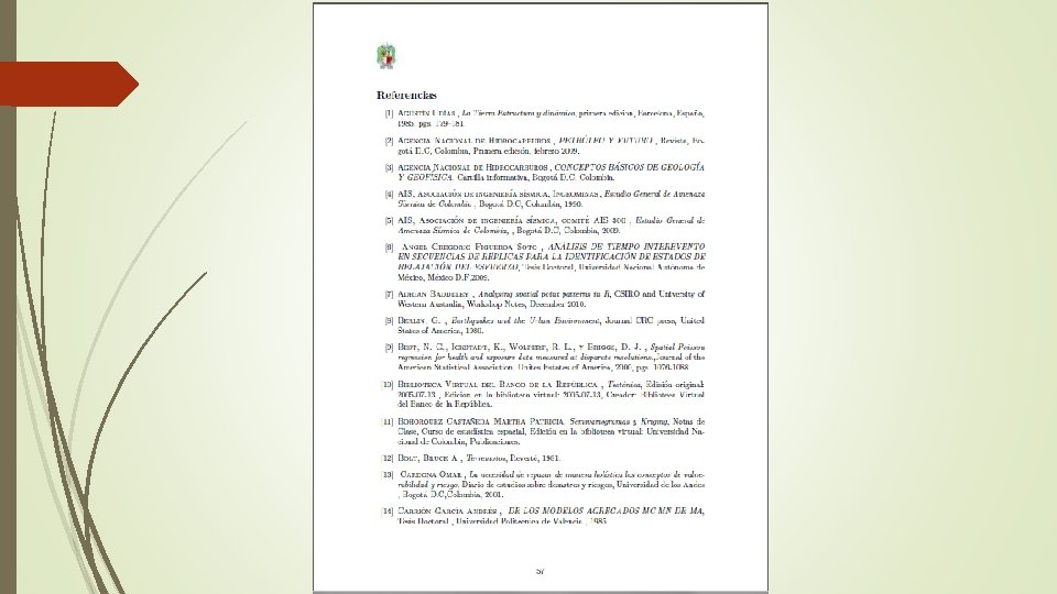 BIBLIOGRAFÍA En la parte de la bibliografía o referencias es donde se encuentra la información correspondiente a autor, libro o publicación que se tuvo en cuenta y sirvió como apoyo en el trabajo. Deben citarse en orden alfabético: libros, sitios web, y demás que fueron usados en el proceso y desarrollo de la investigación o trabajo.