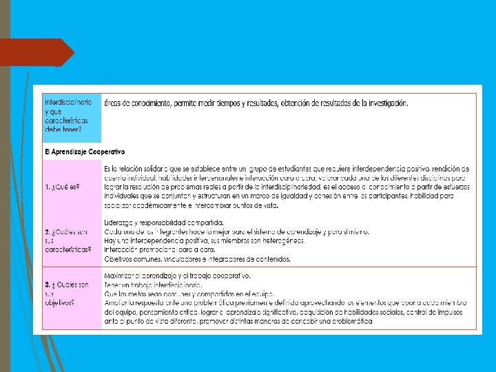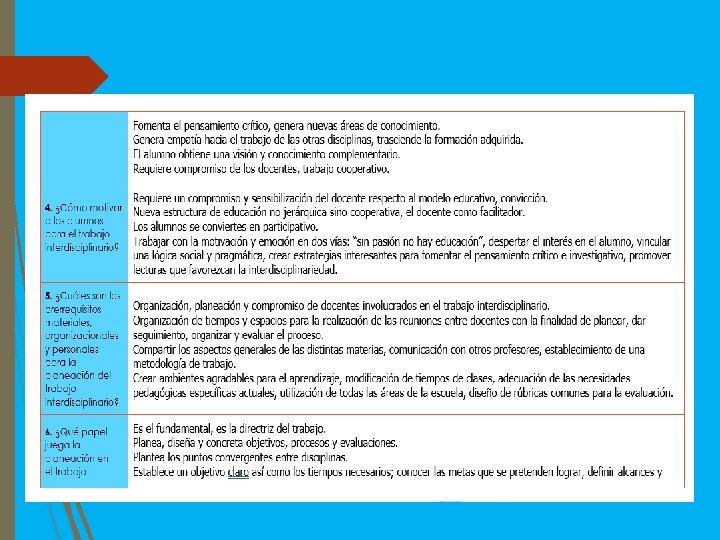 CUADRO DE ANÁLISIS DE LA INTERDISCIPLINARIEDAD y EL APRENDIZAJE COOPERATIVO CONCLUSIONES GENERALES Una vez que se haya trabajado todos los puntos indicados en el documento C. A. I. A. C. Personal, reflexionar en sesión plenaria, asentar las conclusiones en la presente tabla y enviar a todos los grupos heterogéneos.
