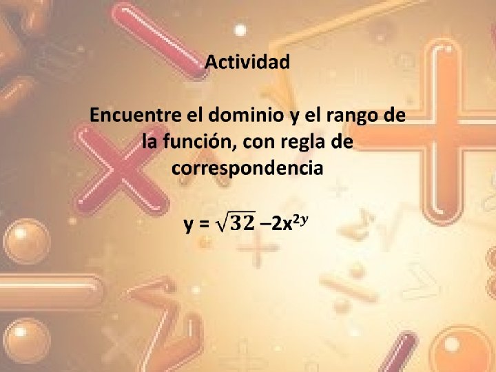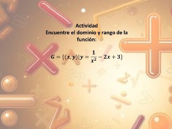 Actividad Encuentre el dominio y rango de la función: G = {(x, y)| y = 3 x + 5}