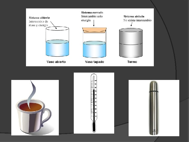 Sistema Cerrado, Abierto y Aislado. A grandes rasgos los sistemas cerrados son aquellos que pueden intercambiar energía, aunque no materia, con los alrededores. Los sistemas abiertos son aquellos que pueden intercambiar materia y energía, y finalmente se conocen como sistemas aislados a todo sistema que incapaz de poder intercambiar materia o energía.