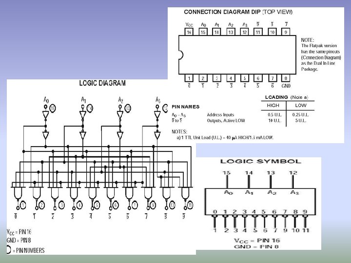 Verificări: Tensiunile de intrare aplicate circuitului 74 LS 42 se obţin, în cazul schemei de faţă, de la circuitul integrat 74 LS 90. Pentru verificarea stării unui circuit 74 LS 42 se va proceda în felul următor: se alimentează circuitul cu o tensiune de 5 V şi se verifică dacă valoarea curentului consumat este de circa 28 m. A; se reproduce starea 0000 prin conectarea la masă a celor patru intrări binare (12 13 14 15); cu ajutorul unui voltmetru de curent continuu se va controla, dacă între terminalul 1 şi masă ( 5 V) tensiunea măsurată este nulă (rezidual există 0, 2 V) şi, de asemenea, dacă între restul ieşirilor şi masă tensiunea este de 3, 7 V, ceea ce corespunde nivelului logic 1. Folosind tabelul 4 se reproduce starea 0001 prin menţinerea mai departe, la masă, numai a terminalelor 12 13 14 şi lăsând neconectat (liber) terminalui 15. Va trebui să găsim starea 0 numai la ieşirea 2, toate celelalte ieşiri aflându se la o tensiune de 3, 7 V. Se va proceda la fel și cu celelalte poziţii, parcurgându se toate situa ţiile din tabelul de adevăr al circuitului. Dacă o singură situaţie nu corespunde situaţiei normale, atunci circuitul nu este bun, el putând fi folosit doar în alte scopuri.