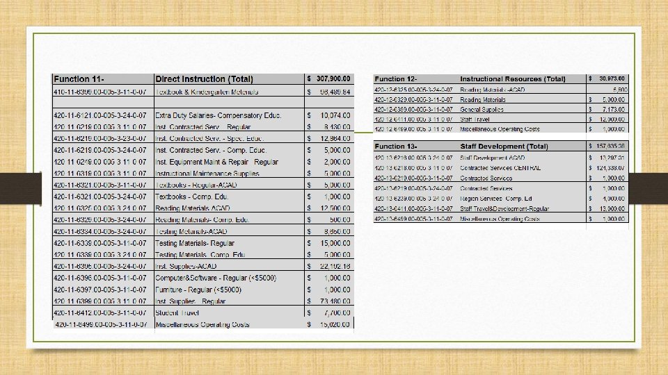 Needs Assessment and Priority Analysis Need to spend more money to make weaknesses to strengths Actions • Professional • Sending teachers PDs development based on and getting service campus needs(writing, from mentors to small group establish the instruction, closing the knowledge they achievement gap for learned during PDs minority children)