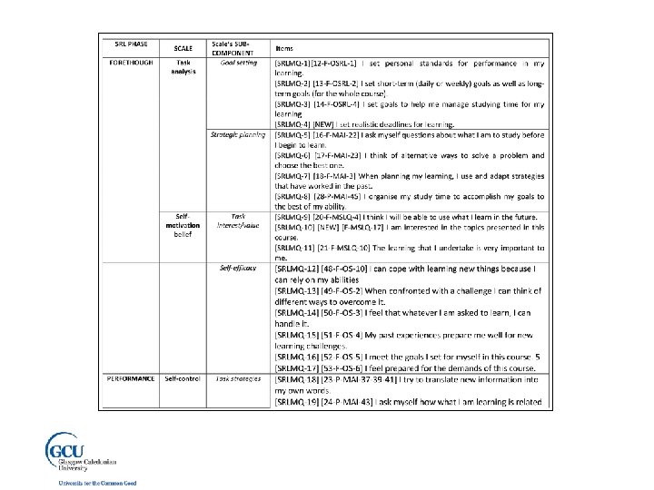 Thank you Dr Colin Milligan Educational Research & Evaluation Department of Academic Development & Quality GLASGOW CALEDONIAN UNIVERSITY Glasgow, SCOTLAND colin. milligan@gcu. ac. uk @cdmilligan Slides (with notes) available from: https: //figshare. com/articles/_Presentation_Encouraging_selfregulated_learning_in_MOOCs/4602316 This work was originally funded by the Bill & Melinda Gates Foundation and carried out with Professor Allison Littlejohn. Thanks to Obiageli Ukadike, Nabeel Gillani and Bill Howe for access and assistance, and Lou Mc. Gill for conducting interviews.