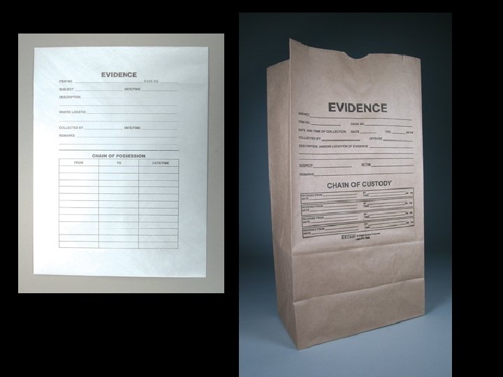 Maintaining the Chain of Custody • Chain of custody must be established when evidence is presented in court as an exhibit. • Every person who handled or examined evidence must be accounted for. Failure to do so can lead to questions of authenticity and integrity of evidence. • There are standard procedures for recording location of evidence, marking for identification, and completion of evidence submission forms.