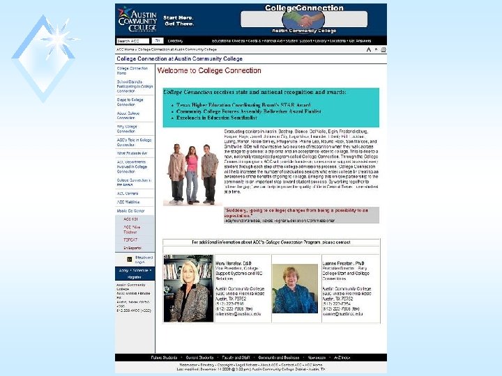 College Connection Website www. austincc. edu/isd • Access to scheduled activities for students, parents, and school officials • Calendars • Links to pertinent ACC sites