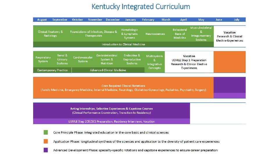 Contemporary Practice Advanced Clinical Medicine ACM (con’t) April May ICM (con’t) Vacation Research & Clinical Elective Experiences Behavioral Basis of Medicine (3 weeks) Musculoskeletal & Integumentary Systems (5 weeks) March Application Phase Begins ICM (con’t) Spring Break Neurosciences (8 weeks) February Vacation USMLE Step 1 Research & Clinical Elective Experiences Multisystem & Integrative Concepts (3 weeks) January Assessment Week Introduction to Clinical Medicine Hematologic & Lymphatic Systems (4 weeks) December Endocrine & Reproductive Systems (6 weeks) Winter Break November Winter Break October Gastrointestinal System & Nutrition (6 weeks) Foundations of Infection, Disease & Therapeutics (10 weeks) Clinical Anatomy & Radiology (9 weeks) September Cardiovascular System (5 weeks) Renal & Urinary Systems (4 weeks) Respiratory System (5 weeks) August June July
