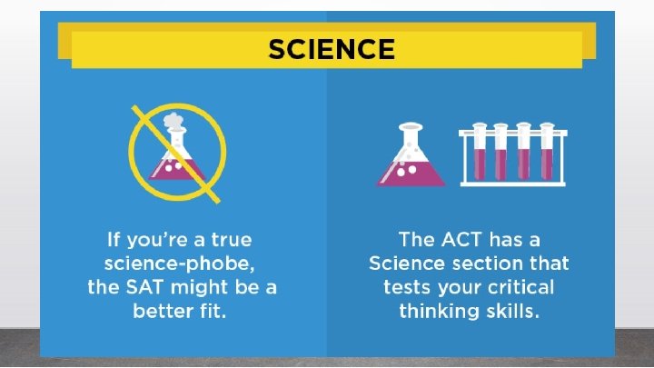 What Really Matters to Colleges? ▶ ▶ GPA (Especially academic courses) Test scores (SAT or ACT) ------------------------ ▶ ▶ ▶ Resume Builders (Community Service, Clubs, Religious Organizations, Athletics, etc) Essay (Grammar really does matter) Letters of Recommendation Enthusiasm for Institution Perseverance to overcome adversity