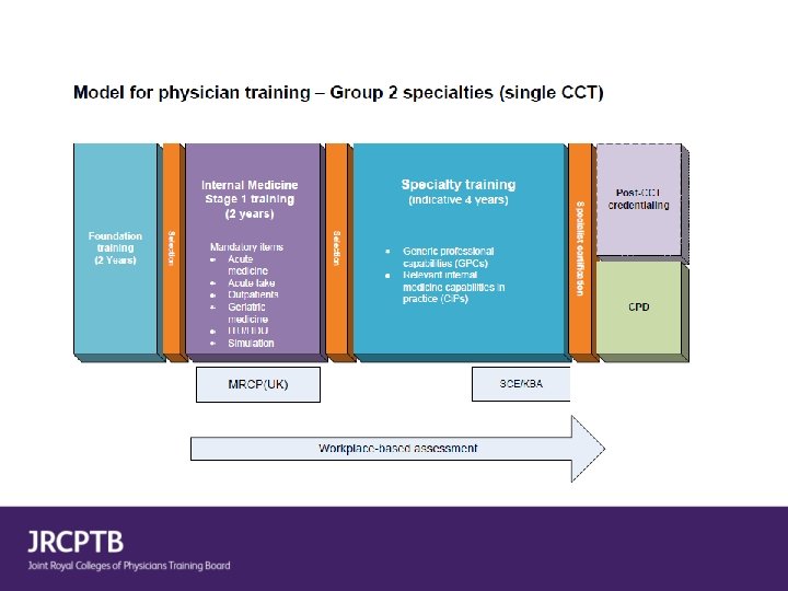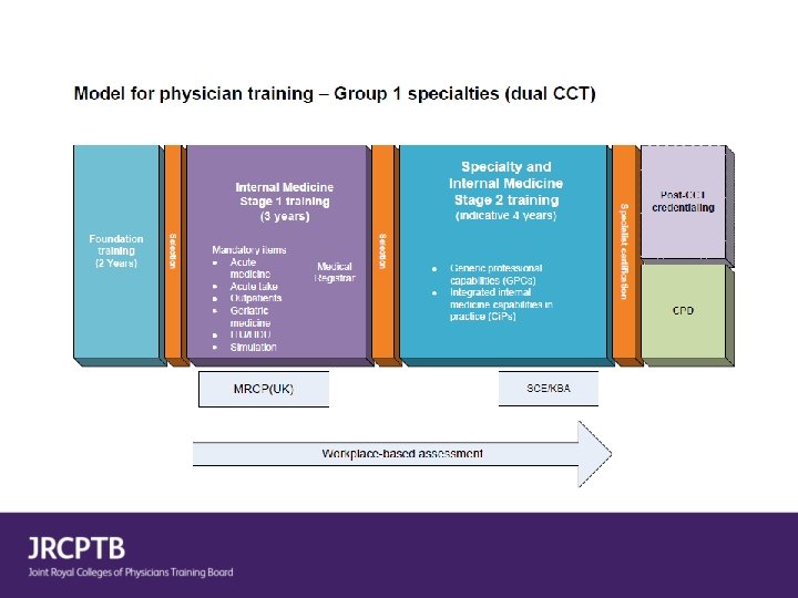 Next steps • Plan for implementation of IM stage 1 to replace CMT from August 2019 • Training the trainers • Continue to work with SACs, GMC and doctors in training to develop specialty curricula • Ongoing communication • Information available on JRCPTB website
