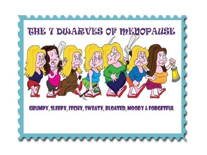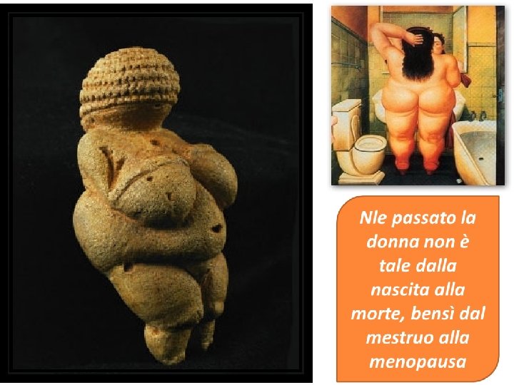 Mestruazioni e menopausa: • fino al diciassettesimo secolo sono considerate benigne, perché purgationes; • nel diciottesimo secolo sono invece viste come secrezioni uterine, che irritano il sistema nervoso delle donne (e di chi gli stava intorno); • nel ventesimo secolo, R. A. Wilson afferma che la menopausa altro non è che una deficienza di estrogeni; • Quindi si scoprono i rischi di tumore ed infine le nuove frontiere della genetica.