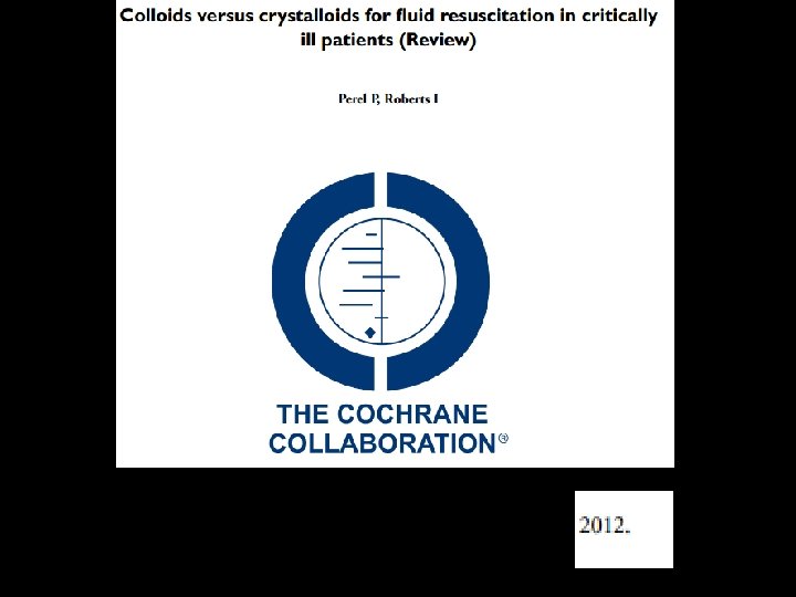 COLOIDES - HIPERTONICA VS ISOTONICA • 1 • RR 0. 50 ALB+ SS 3% VS ISOTONICA (IC 95% 0. 06 -4. 33) * • 1 VOLUVENT+ SS 3% VS LRINGER • RR 0. 25 (IC 95% 0. 03 - 2. 15) * • 9 • RR 0. 91 DEXTRAN + SS 3% VS ISOTONICA (N 1879) (IC 95% 0. 79 -1. 06) *