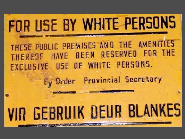 Apartheid was legal from 1948 – 1990 in South Africa. It included two basic species of laws: • Petty Apartheid • Grand Apartheid