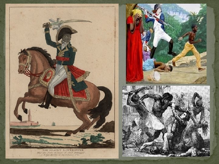 Revolution and Independence � The Age of Enlightenment during the 1600’s and 1700’s and its ideas of individual rights had motivated the North American colonies to rebel against the British Empire in 1776. The American victory against the British in 1783 and the creation of The United States of America would inspire revolutions in France and Latin America as well. � The Haitian Revolution (1791 -1803)- The French Revolution of 1789 not only propelled all of Europe into a war, but also touched off slave uprisings in the Caribbean. On Saint Domingue, the free people of color began a rebellion when French planters would not grant them citizenship as decreed by the National Assembly of France in its "Declaration of the Rights of Man. "A bloody, thirteenyear revolution began and became a complex web of wars between slaves, whites, free people of color, Spain, Britain and France. The island of Hispaniola produced most of the world’s coffee and sugar and made France and Spain wealthy at the expense of the Slaves who worked its plantations. The mistreated Slaves called “Maroons” revolted in 1791 and took over the French colony. France was in the middle of a revolution and was at war with Britain and Spain, both countries aided the slaves against France. � Toussaint L'Ouverture was the leader of the Saint Domingue rebellion and worked with Spain in order to free his people. However when Spain refused to grant freedom to the slaves he abandoned his Spanish allies, joined the forces of the French Republic, who promised to free them, and turned his troops against Spain. Under the military leadership of Toussaint, the forces made up mostly of former slaves succeeded in expelling the Spanish forces. In the end, Toussaint essentially restored control of Saint-Domingue to France. In 1801, L'Ouverture issued a constitution for Saint-Domingue which provided for autonomy and decreed that he would be governor-for-life, calling for freedom and a sovereign black state. � Napoleon Bonaparte dispatched a large army of French soldiers and warships in order to restore French rule. L'Ouverture was promised his freedom if he agreed to integrate his remaining troops into the French army. He agreed to this in May 1802. He was tricked and captured by the French. He died months later in prison.
