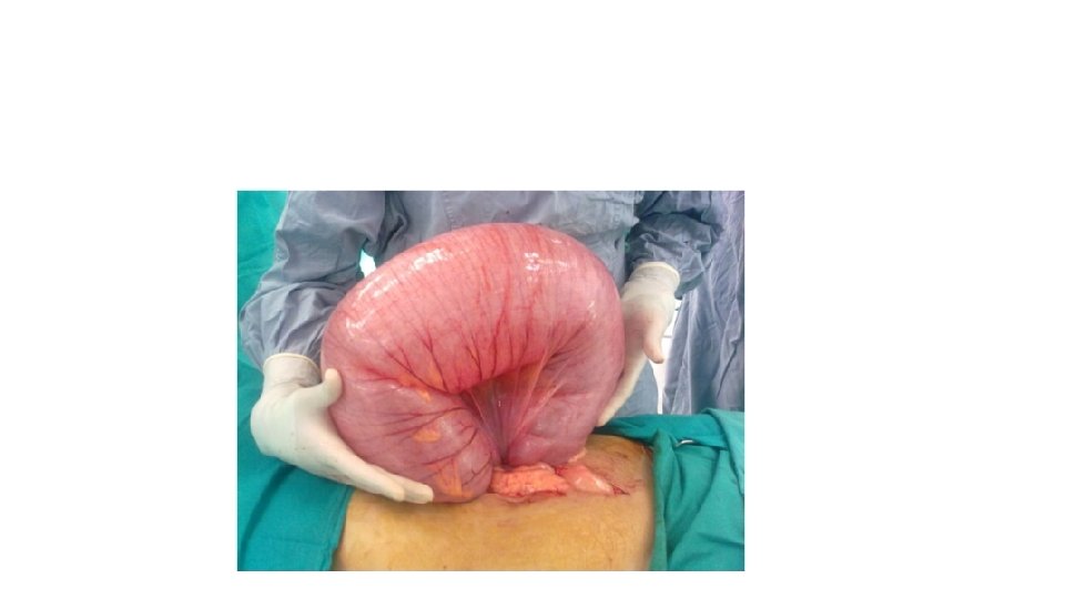 Volvulus • A colonic volvulus results when the colon twists on its mesentery, which impairs the venous drainage and arterial inflow. The cecum and sigmoid colon are most commonly affected. • Volvulus typically occurs in elderly, debilitated individuals; patients living in an institutionalized setting; or patients with a history of chronic constipation (western type). • African type is related to high fiber diet • during pregnancy, most commonly occurring in the third trimester