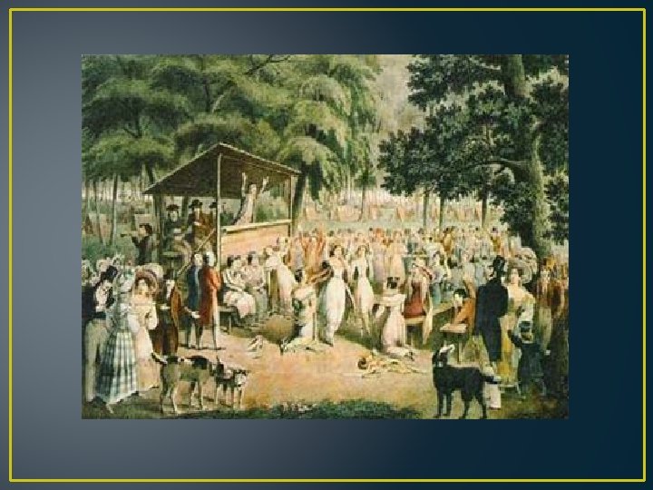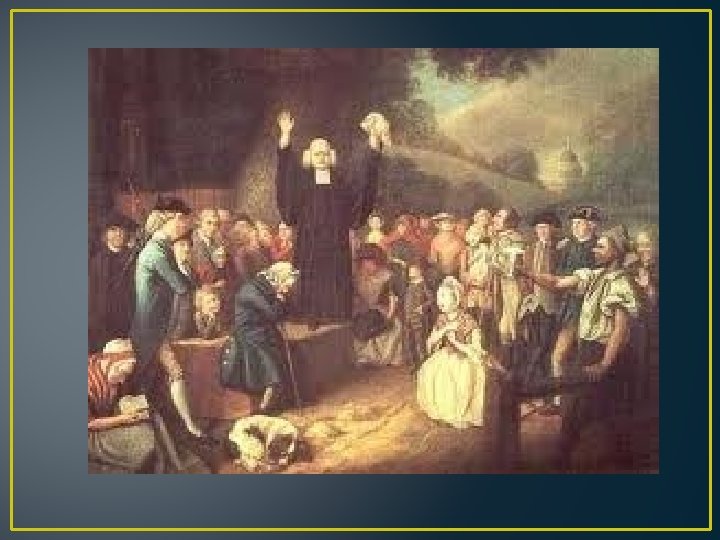 The Great Awakening (1720 -1760) • Evangelical Protestant Movement • Colonists lost the religious passion • Religion had become dry and dull, passionless • Religious revival lead by travelling ministers • inner religious belief was more that outward behavior • Appealed to the heart and drew large crowds