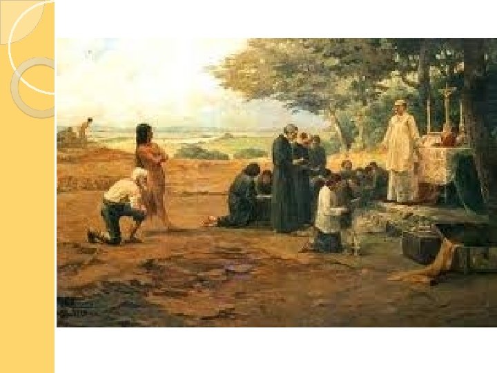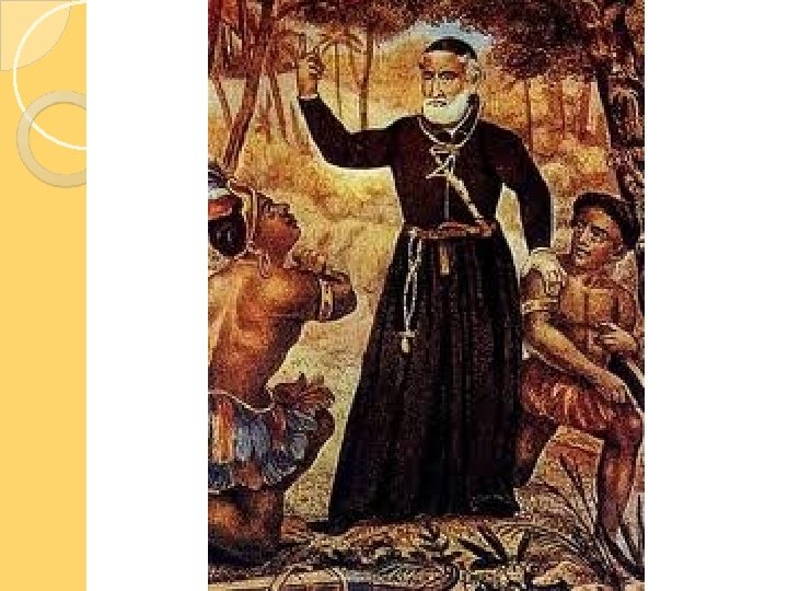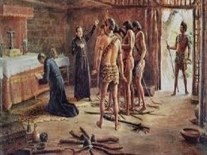 JESUÍTAS Primeiro momento: os jesuítas limitavamse a visitar aldeias fazendo alguns batismos. Comunicavam-se com os indígenas com a ajuda de intérpretes. Com o tempo, os jesuítas mudaram sua estratégia e procuraram reunir povos indígenas em aldeamentos.