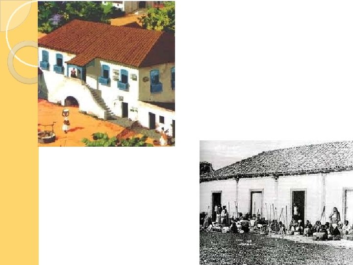 ENGENHO Propriedade açucareira: compreendia as plantações de cana e os equipamentos para processá-la. Construções: oficinas, estrebarias, capela, casa-grande (onde morava a família do proprietário). Senzala: onde viviam os escravos.