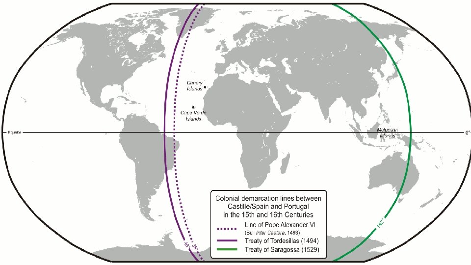 II. NEW COLONIES A. Portuguese and Spanish 1. Portugal gained slave ports in Africa, Spain gained colonies in SE Asia 2. Split South America with the Treaty of Tordesillas