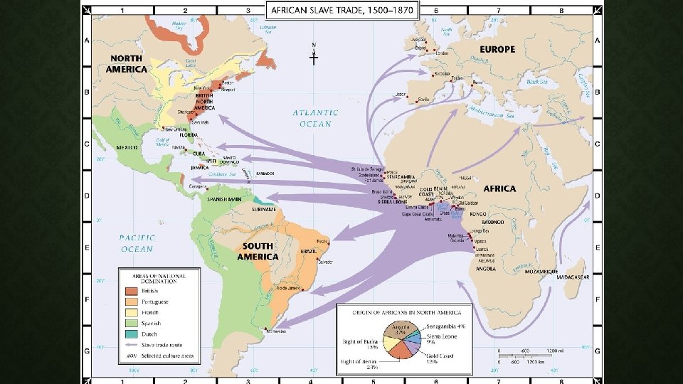 V. ORIGINS OF THE SLAVE TRADE A. Colonies needed plantation workers but natives died of disease and indentured servants were temporary B. Slave trade already in Africa, Europeans created a new market