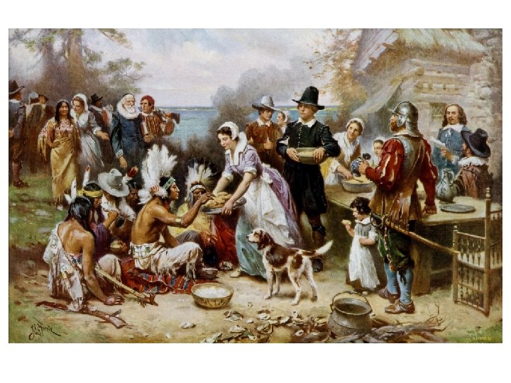 • Difficult winter (44 out of 102 survived)…. • (First year went through a “starving time”) • Developed friendly relations with Indian tribes • Squanto befriended settlement • Plymouth settlement survived under the leadership of Gov. William Bradford • (First Thanksgiving)