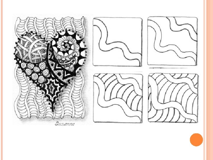 ZENTANGLE HOW TO Keep going. Don't worry about patterns, as you do more, the next pattern seems to suggest itself. o You can work up to the border, however, you don't have to – leaving white space can work well too. o