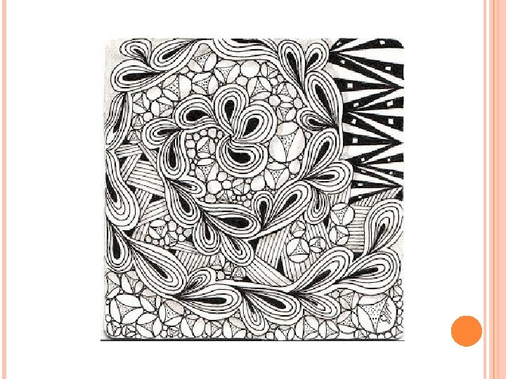 ZENTANGLE HOW TO Draw a ‘String’ o Draw a light random line within the border o Can be anything but keep it simple. o Aim to create areas in which to doodle. o Experiment until you get something you are happy with.
