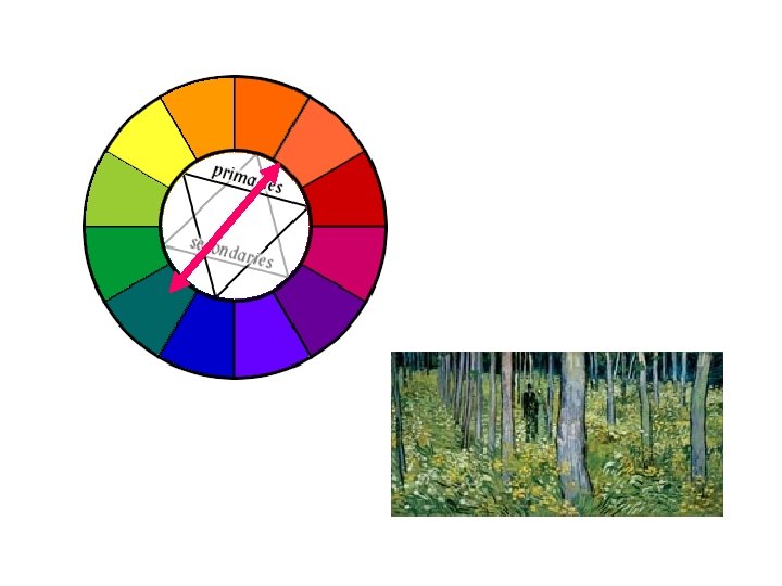 Complementary Colors § opposites on the color wheel § unsettling, hard to look at - note: NOT COMPLIMENTARY