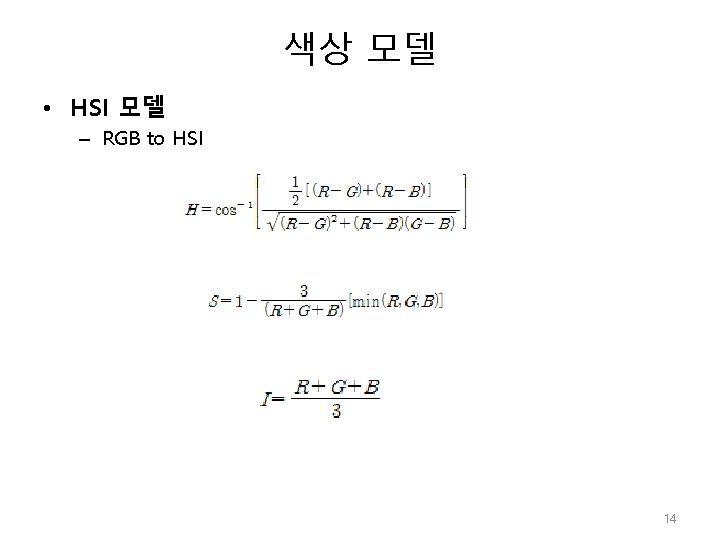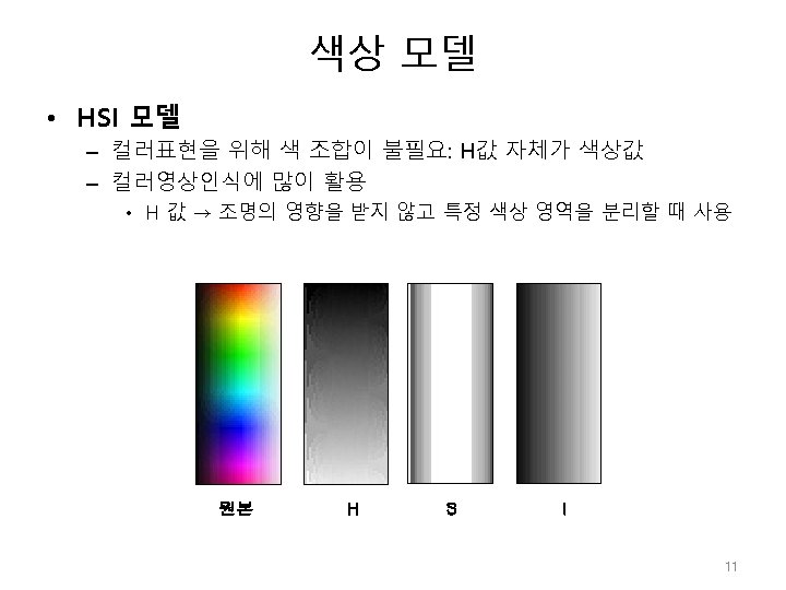 색상 모델 • HSI 모델 원본 hue saturation intensity 13