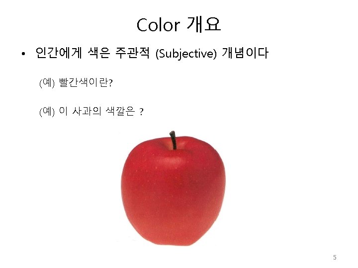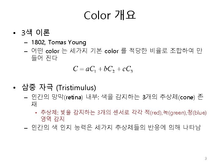 Color 개요 Human eye Cone Tristimulus 4