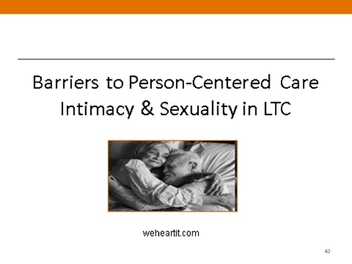 Total Nursing Home Residents – Approx. 1. 6 million § Percentages of sexually active adults by age group – New England Journal of Medicine § § § 57 – 63 years 65 – 74 years 75 – 85 years 73% 53% 26% 13