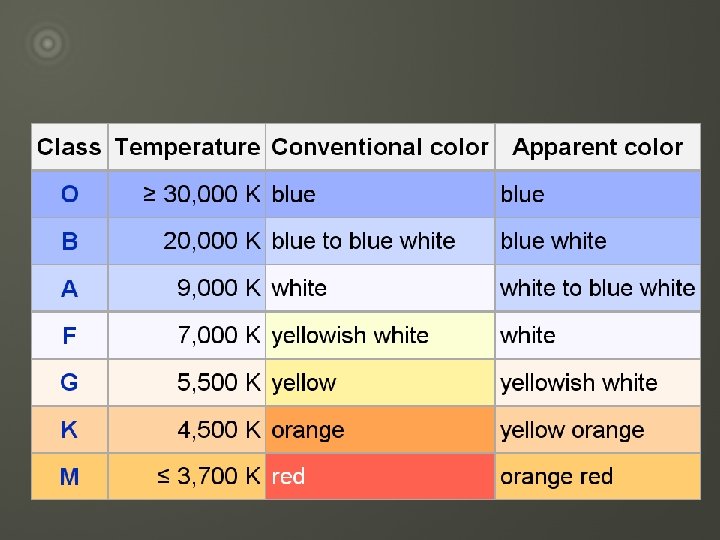 Colour Index u u = difference of the brightness measured through two different filters e. g: B-V, V-R Sp. type Colour B-V [mag] Spica B 1 Blue -0. 23 Deneb A 2 Blue-White +0. 09 Sun G 2 White +0. 65 Betelgeuse M 0 Orange-Red +1. 50