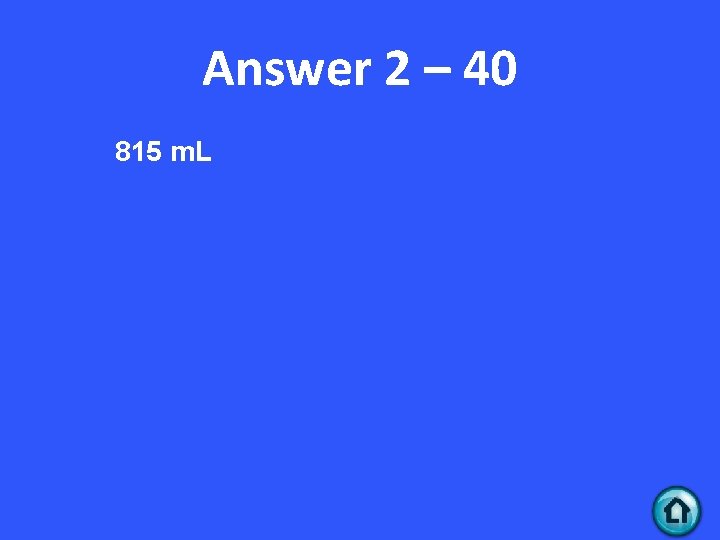 Answer 2 – 30 60. 0 L