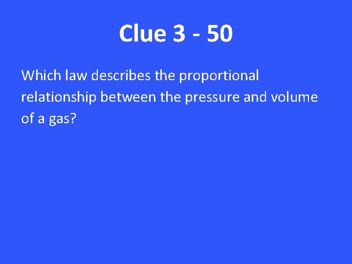 Clue 3 - 50 Which law describes the proportional relationship between the pressure and volume of a gas?