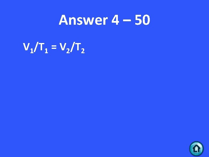 Answer 4 – 50 V 1/T 1 = V 2/T 2