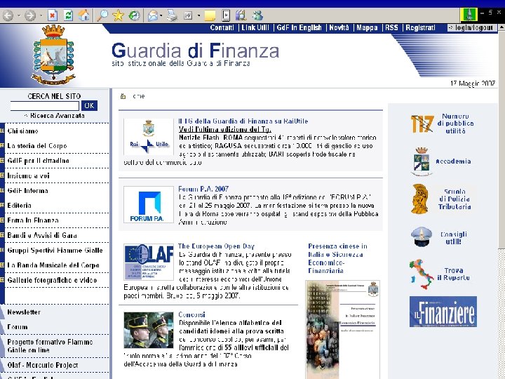 Comando Generale della Guardia di Finanza - V Reparto Ufficio Centrale Relazioni con il Pubblico www. gdf. it Nuovo Sito Istituzionale della Guardia di Finanza Forum PA 22 maggio 2007