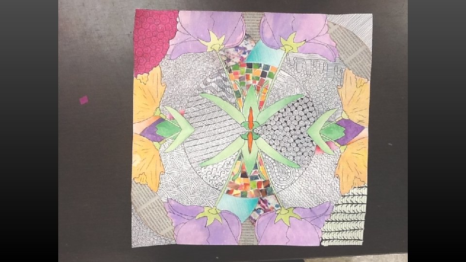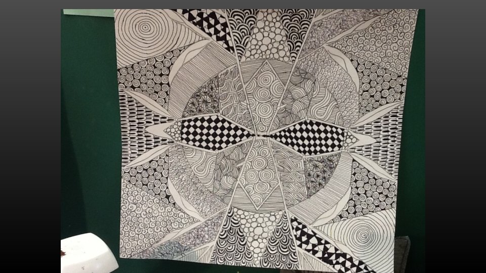 What combinations do you see? Techniques we are using on Mandala: Shading Designs/ Patterns Lines/ Shapes Zentangles Collage