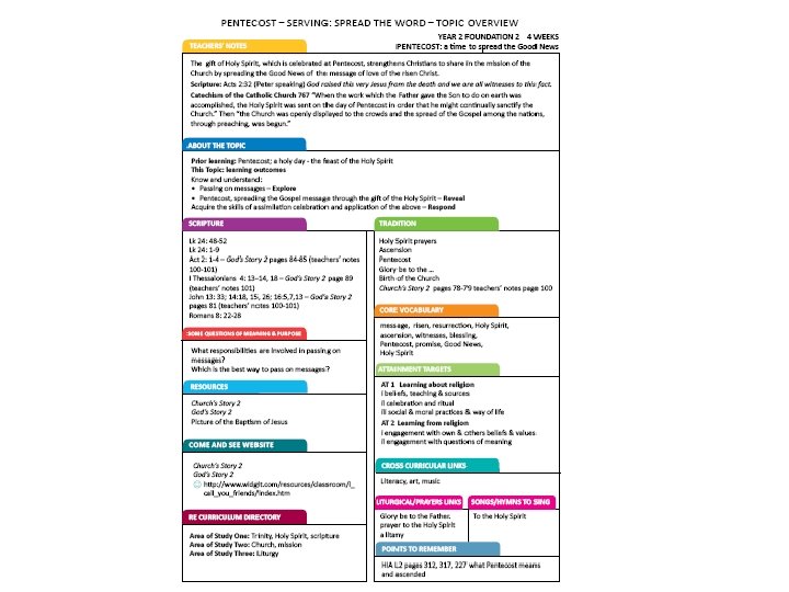 SCRIPTURE N/R 1 2 3 4 5 6 Domestic church family Myself Families Beginnings Homes People Ourselves Loving Ps 131 Is. 43 1 -2 Ps 28 6 -8 Ps 63 6 -9 Ps 131 Luke 12: 2730 Gen. 1 Ps. 139: 14 -18 PS 8 Ps 19 Ephesians 1: 3 -5 Romans 12: 8 -13 Ep 5: 1 -9, 6: 1 -4 Lk 2: 39 -40 Jn 13: 34 -35 Mt. 1: 1 -17 Gen. 21: 1 -7 Gen. 25: 19 Gen 35, 37 Ruth 1 Proverbs 1 Kings 2 -4 Gen 1: 26 – 31 Cols 3: 10 - 11 Col 3: 12 -17 Phil 4: 4 -9 Hosea 11: 1 -4 Isaiah 40: 1 -5, 9 -11, 2831 Psalms 23, 136 Titus 3 4 -7 1 John 3: 1 -3 Luke 15: 11 -32 Matthew 5: 1 -17, 45 -48 Luke 6: 36 Ephesians 4: 26, 31 -32 Baptism/ Confirmation belonging Welcome John 13: 34 -35 Mark 6: 6 -7, 30 -32 Belonging Mark 10: 1316 Signs & symbols Promises Acts 2: 42 -47. 4: 3237 Acts 8: 26 -30, 34 - 38 Mt 5: 14 -15 1 Corinthians 12: 31, 13: 1 -8 Acts 16: 11 -15 Called 1 Cor 12: 31; 13: 1 -8 a, 13 Mk 12: 28 -31 Titus 3: 4 -7 Act 2: 1 -4 Initiation Life choices Vocation/ commitment Isaiah 11: 1 -4 Isaiah 42: 1 -3 Eph 4: 1 -6 Mt 28: 18 -20 Rom 12: 8 -11 Gen 2: 18, 21 -25 Mt 19: 6 Gal 5: 22 -23 a Advent/ Christmas loving Birthday Waiting Preparing Visitors Gift Hope Expectation Luke 2: 8 -20 Matthew 2: 112 Luke 1: 2631, 38 Luke 1: 39 -45 Luke 2: 1 -7 Luke 2: 8 -20 Mt 2: 1 -9, 9 -19 Isaiah 9: 2 -6 Gal 4: 4 -6 Lk 1: 26 -31, 38, 39 -45 LK 2: 1 -7 Isaiah 40: 1 -5 Lk 1: 26 -31, 38 Lk 1: 39 -55 LK 2: 1 -7 Lk 2: 8 -20 Mt 2: 1 -12, 16 -18, Mt 2: 13 -15, 19 -23 Romans 13: 11 -14 Isaiah 40: 9 -11 Mt 2: 1 -12, 16 -18 Eph 1: 3 -6 1 John 4: 9 Phil 4: 4 -7 Isaiah 40: 9 -11 Isaiah 11: 2 -5 Isaiah 9: 1, 5 -6 Lk 3: 10 -16 Jn 1: 9 -16 Mk 1: 1 -5 Isaiah 35: 9 -10 Isaiah 62: 11 -12 Local Church community Celebrating Special people Books Journeys Community Mission Sources Matthew 3: 14 -17 Psalm 122: 1 -9 Psalm 84 Psalm 118: 19 -20, 26 -29 1 Cor 12: 12 -27 Rom. 12: 8 -11 Mk 3: 13 -19 Lk 4: 14 -22 Isaiah 61: 1 -2, 1011 Mark 3 13 -19 Lk 8: 1 -3 Jn 17: 20 -21 Bible Eucharist relating Gathering Meals Giving & receiving Memories Unity Luke 22: 1920 Thanksgiving Luke 22: 19 -20 Listening & Sharing Mark 10: 13, 14, 16 Mk 14: 12 -16 Mk 14: 22 -25 I Corinthians 11 24 -27 John 17: 22 -23 Jn 17: 20 -23 Rom 12: 3 -10 Jn 14: 27 Luke 2: 22 b Luke 2: 23 -40 Luke 2: 41 -52 Lk 22: 24 -27 1 Cor 11: 24 -27 Mt 5: 45 -46
