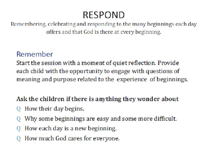 Life experience EXPLORE Scripture REVEAL Catechism Reflecting RESPOND …