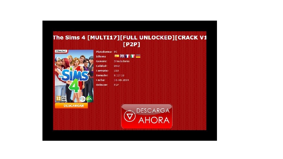 CLICCHIAMO SUL PRIMO RISULTATO The Sims 4 [MULTI 17][FULL UNLOCKED][CRAC V 1][P 2 P] 31 -08 -2014 MULTI 5 8. 12 GB