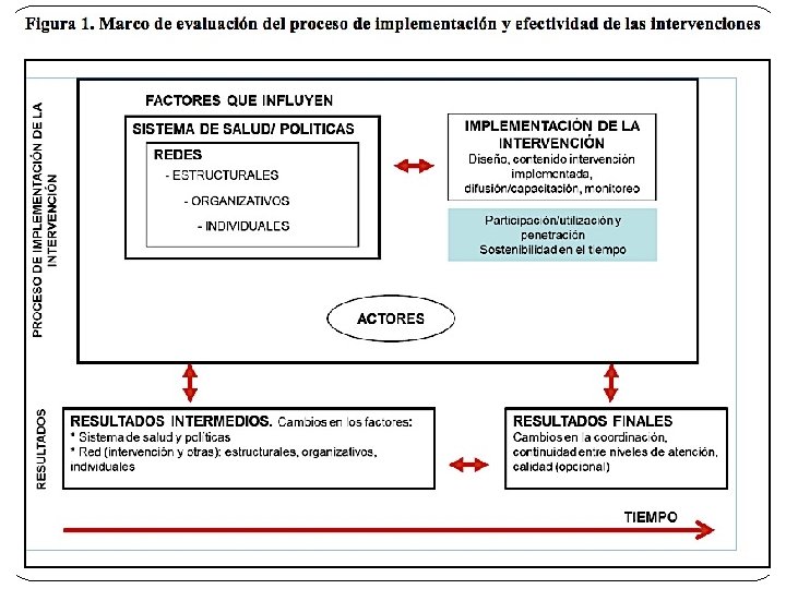 �M. Luisa e Ingrid, sugieren diferenciar en marco de Análisis �La efectividad de las intervenciones �Proceso de implementación…. La implantación del proceso �Factores de éxito o fracaso �Sostenibilidad �Debe clarificarse �La “semilla”: intervención �El “suelo” o contexto �El jardinero o proceso �Resultados en dos dimensiones �De los servicios de salud �Del proceso de implementación: Adopción, fidelidad, y sostenibilidad en el tiempo