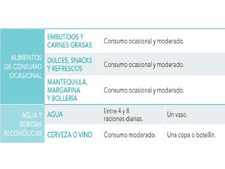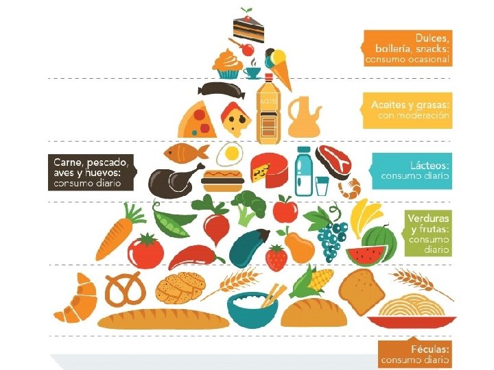 CONSEJO GENERAL �� grasas, azúcar y sal (productos elaborados) �� alimentos de origen animal �� hidratos de carbono complejos (legumbres, patatas, cereales y derivados) �� frutas y verduras (vitaminas, minerales y fibra)
