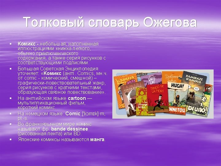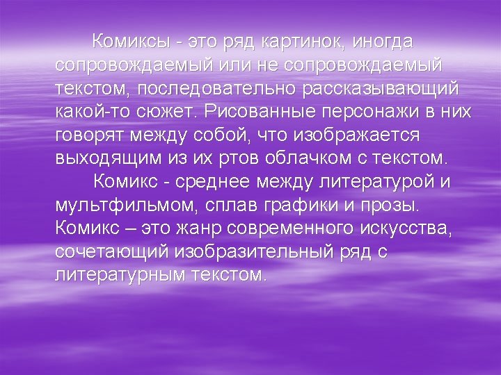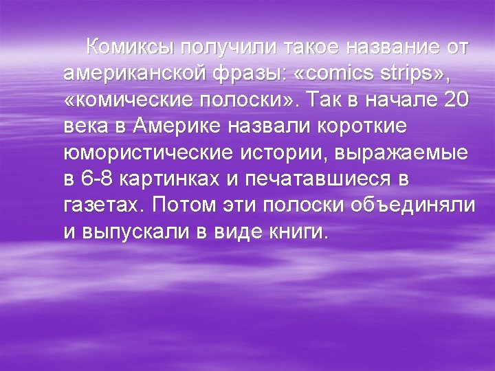 “Comics” Projekt der Schüler der Klasse 7 Die Deutschlehrerin Lifintova Jelena Wiktorowna 2013