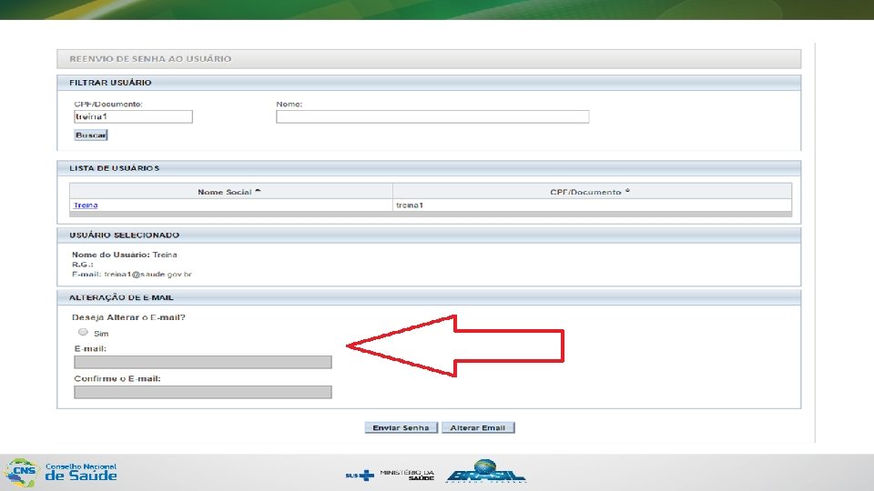 ALTERAÇÃO DE E-MAIL E REENVIO DE SENHA PELO CEP pode alterar o e-mail do cadastro do pesquisador e reenviar a senha para o novo endereço cadastrado.