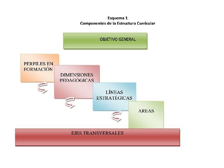 Componentes de la Estructura Curricular • La Estructura Curricular del PNAEC, parte entonces del reconocimiento de que estudiantes y trabajadores de la educación pasan un tiempo considerable en la escuela, espacio donde los colectivos escolares deben contribuir al desarrollo pleno transversal de los Perfiles en Formación de quienes ahí conviven, en segundo lugar estamos planteando las Dimensiones Pedagógicas que contienen las Líneas Estratégicas que deben ser entendidas como el proyecto comunitario en sus niveles nacional, estatal, regional, municipal, comunitario, escolar y áulico, desde esos proyectos se definen las necesidades formativas de las personas que conforman el colectivo y que van tomando parte en los ejercicios de elaboración de Diagnósticos, Programas y Planes Participativos. Una vez definidas estas dos primeras, delimitamos las Áreas, como formas de reconocer los conocimientos y capacidades mínimas básicas a desarrollar, pero que en todo tiempo deben ser consideradas en su relación, interacción, influencia y respaldo a otras disciplinas de conocimiento.