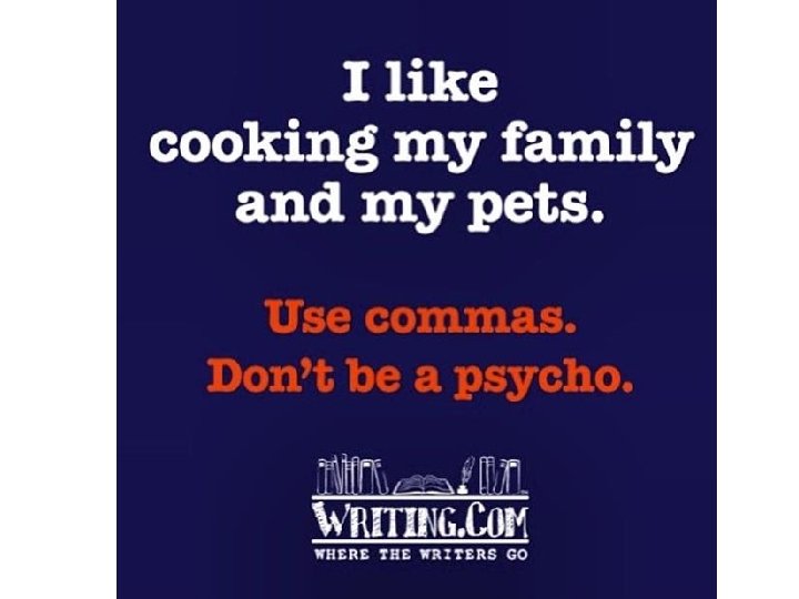 How do I use a comma? • In your groups, I want you to create a brainstorm about how to use a comma. Success criteria for your brainstorm: ü Clearly describe the uses of a comma in point form. ü Provide examples of how to use a comma. ü Common mistakes people make. How do you I use a comma? • Leader • Manager • Note Maker • Reporter • Supporter Formal; Comma; Script; Succinct; Conventions