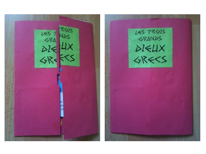 Comment réaliser la chemise support ? Matériel : une chemise cartonnée ordinaire. Colle et ciseaux. 1. Ouvrir et aplatir fermement la chemise. 2. Replier chaque côté vers le centre afin que le bord de chaque côté recouvre le pli central de 2 -3 mm environ. 3. Sur le côté droit, dessiner l’onglet qui viendra s’insérer dans le côté gauche (voir dessin). Le découper (en fait on découpe un bande à droite et à gauche pour qu’il reste un onglet). 4. Marquer au crayon l’emplacement sur le côté gauche et découper simplement l’encoche dans laquelle le côté droit va s’insérer. 5. Vérifier que tout s’encoche bien. Au besoin, ajuster les plus de la chemise pour qu’elle se ferme bien dans son encoche. 6. Préparer l’étiquette du titre de l’exposé. La découper en deux proprement et verticalement. Coller chaque partie sur son côté en veillant que, chemise fermée, les deux parties soient bien jointives. 7. Et voilà !